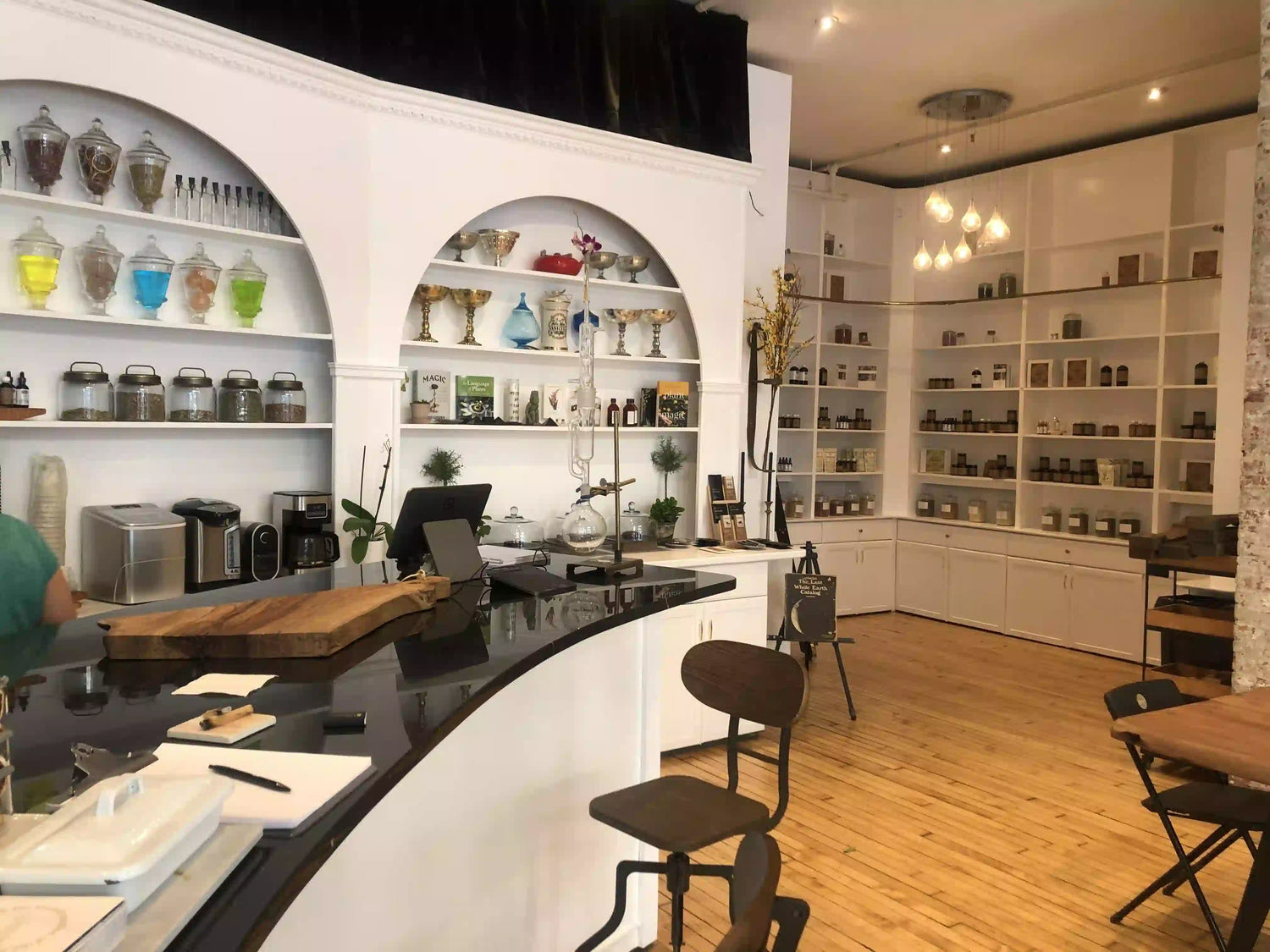 Our New York City flagship in Soho offers a small but delightful menu of plant-based food and beverages. Our botanical dispensary and herbal counter are designed to educate and assist customers with herbal remedies and their medicinal benefits. We invite you to sample our seasonal elixirs and shop our curated selection of fine botanical remedies.