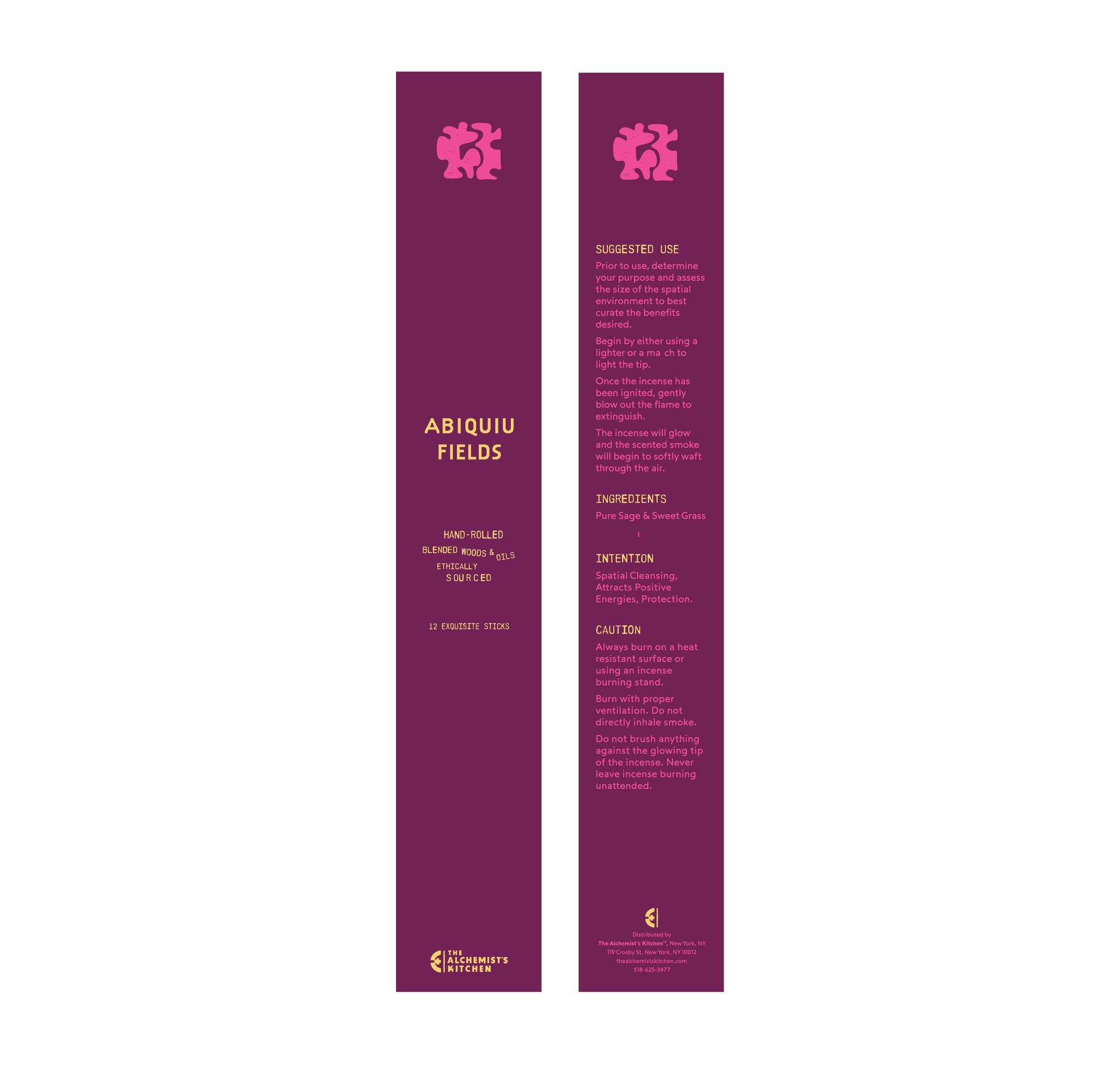 Our branded hand-rolled incense sticks are richly infused with the traditional scents of sage and sweetgrass, inspired by hills and basins just north of Santa Fe, New Mexico nearby the longtime home of artist, Georgia O'Keefe.