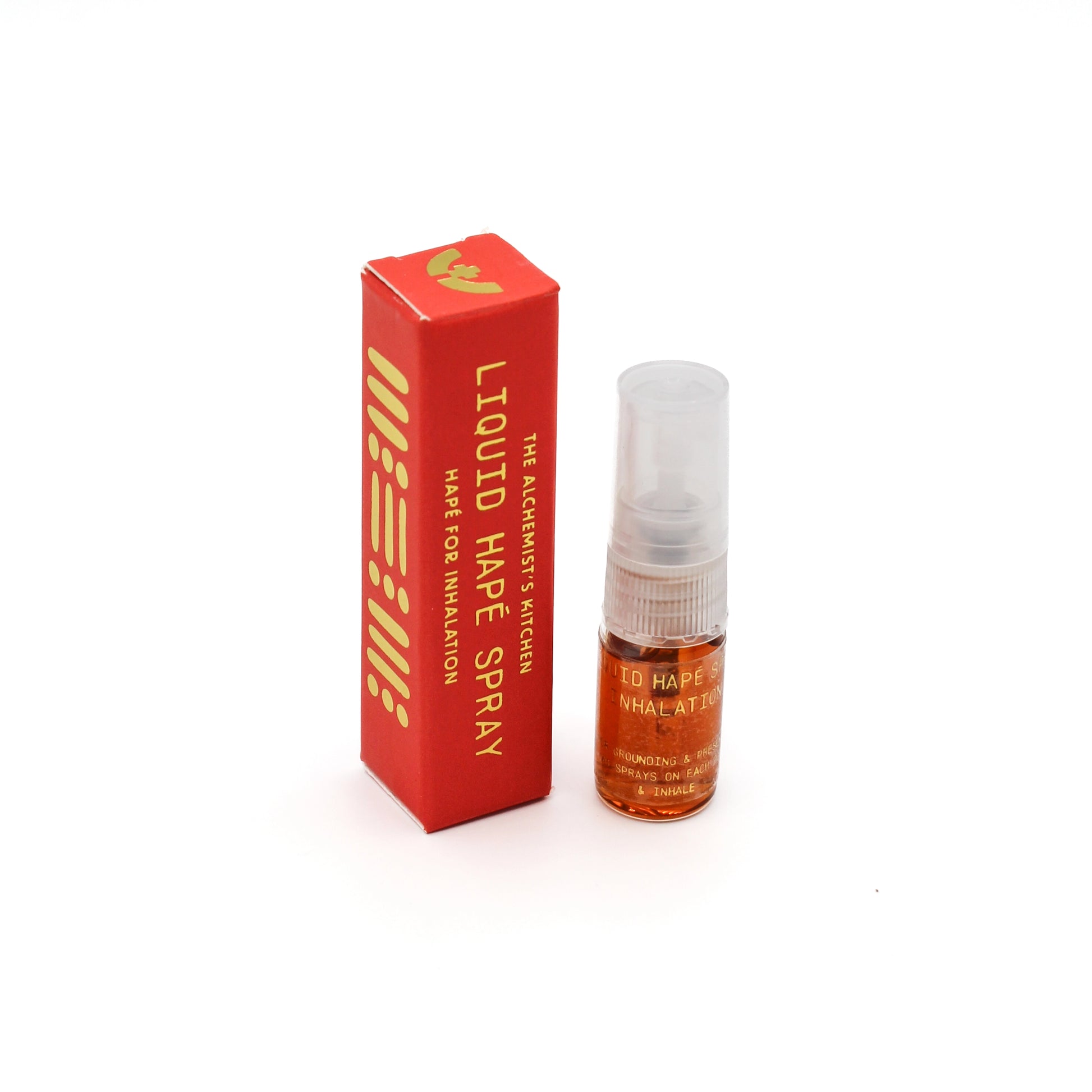 Our Liquid Hape’ is an aromatherapeutic inhalation of distilled tree resins, eucalyptus, ruda, paprika, and a touch of tobacco leaf. We work with a women’s cooperative in Southern Colombia who formulate this liquid spray, which far less available than the traditional Hape’ powders that are blown into the nostrils. Intended to awaken chakra points in the back of the head, purify the sinus and respiratory tracts.