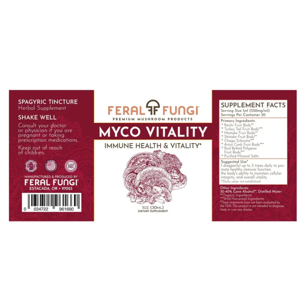 Myco-Vitality exhibits the wide range of benefits of a diverse range of fungi to support your body's natural proclivity towards vitality and balanced homeostasis. This proprietary blend features favorites from the Pacific North West to provide ultimate full system support.